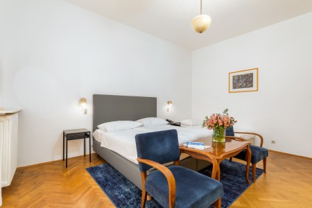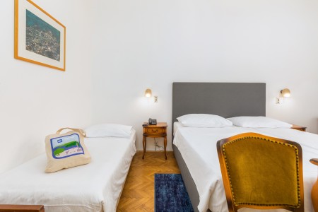 Dvokrevetna soba: oko 30 m², s pogledom na park, po želji moguće rezervirati i na morsku stranu s balkonom.