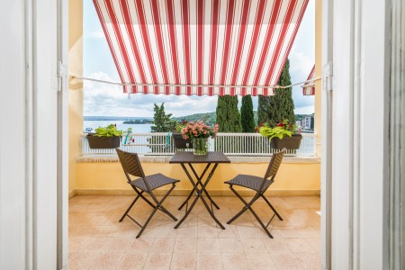 Apartman: oko 50 m², spavaća soba s bračnim krevetom, dnevni boravak sa sofom, dvije kupaonice, jedna s tušem, druga s kadom. Balkon prema moru