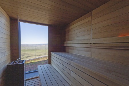 Rox Suite: otprilike 50 m², luksuzno s dizajnerskim namještajem, spavaći prostor s niskim dvostrukim krevetom, dnevni boravak s naslonjačem i kaučem za spavanje, velika tuš kabina u kupaonici, otprilike 25 m² veliki, ogledalni balkon s 180°-pogledom na okolne vinograde i dolinu Mira.