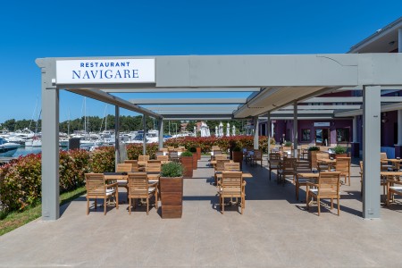 Uređaji: Prijemni prostor sa salonom, ekskluzivni à la carte restoran "Navigare" s barom i terasom, konferencijska sala, lift, usluga pranja rublja (uz nadoplatu). Parkiralište u vlasništvu hotela (besplatno). WiFi internet dostupan u cijelom hotelu (besplatno).