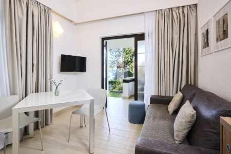 Classic apartman za 2-3 osobe: cca. 27 m², u prizemlju, spavaća soba s bračnim krevetom, dnevni boravak-soba s kaučem na razvlačenje (210x135 cm) za jedno dijete do 12,99 godina, blagovaonički prostor, satelitska TV, čajna kuhinja s mikrovalnom pećnicom, perilicom za posuđe, hladnjakom, kuhalom za vodu i aparat za kavu, kupaonica s tuš kabina/WC, s terasom s stolom i stolicama s pogledom na park. Također, sef, besplatan WiFi internet, telefon i sef.
