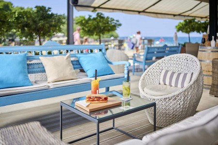 Uređaji: Recepcija, sef na recepciji (uz naplatu), bankomat, tri klimatizirana restorana, aperitiv bar, terasa kafića, kompleks bazena s morskom vodom s pool barom, sunčalištem, zasebnim bazenom za bebe, zasebnim dječjim bazenom i Spray Parkom. Suvenirnica i prodavaonica časopisa, konferencijska dvorana, TV sala, lift, prostorija za pohranu bicikala. Povremena glazba za ples na terasi ili u kafiću, animacijski program za djecu i odrasle od kraja svibnja do početka rujna (svakodnevno osim subotom). Čuvano parkiralište uz naplatu (cca 1,50 € po danu). WiFi internet dostupan u lobiju (besplatno).