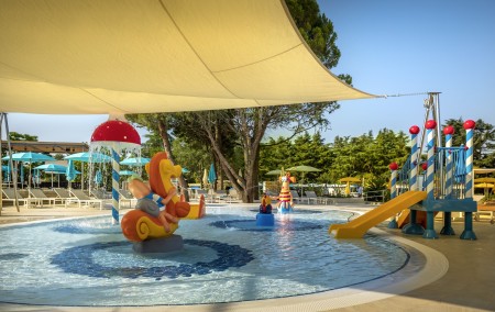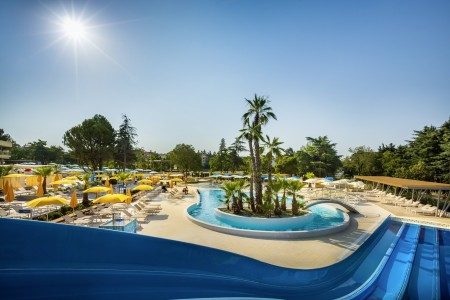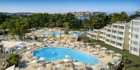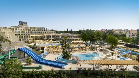 Uređaji: Lobi s barom i terasom (veliki izbor pića, sendviča i kolača), liječnička ordinacija, buffet restoran "Mediterraneo" s show-cookingom i velikom terasom, restoran "Oliva" s velikom ponudom pića i koktela te laganim ručkovima, kompleks slatkovodnih bazena s aktivnostima-bazen i barom te dvije vodene tobogane, grijani bazen za bebe s vodenim atrakcijama, Relax bazen, ležaljkama i suncobranima (ograničen broj, besplatno), te velikom sunčanom terasom s Relax zonom i prostorom za odmor. Raznolik animacijski program u razdoblju od 15.06.-01.09. s sportskim aktivnostima i zabavom za odrasle i djecu različitih dobnih skupina, Teens Lounge (13-17 godina) s Playstationom, Maro Club (Mini Club 0-6 godina, Maxi Club 7-12 godina), dječje igralište, iznajmljivanje Play Stationa. Biciklistička soba, čuvano, djelomično zasjenjeno parkiralište (uz naplatu; oko 3 € po danu). U sezoni vozi minijaturni vlak do starog grada (naplaćuje se). Besplatni WiFi-internet dostupan je u cijelom hotelu.