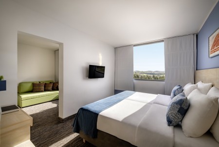 244 sobe: opremljene su klimatizacijom, telefonom, besplatnim WiFi internetom, LCD televizorom, sefom, minibarom te kupaonicom s tušem/WC-om. Dječji krevetić dostupan na upit (uz nadoplatu, 5 € po danu).