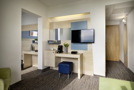 Junior suite: cca 30 m², odvojen dnevni prostor s kaučem na razvlačenje i foteljom, balkon.