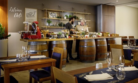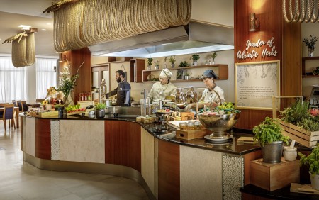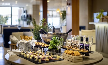 Prehrana: Obilni doručak uz pjenušac s naknadnim Brunch-buffetom od 07:00 do 13:00 sati. Aperitivo vrijeme od 17:00 do 18:00 sati s slanim grickalicama, fingerfoodom i pjenušcem. Usluga prehrane počinje nakon prve noćenja s doručkom.