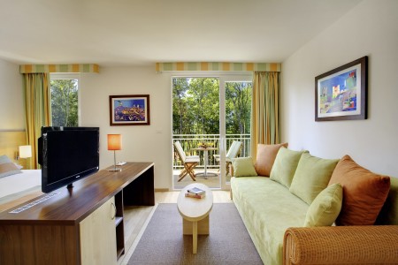 Obiteljske sobe: otprilike 40 m², s pogledom na park ili more, dvije dvokrevetne sobe s povezujućim vratima, dva tuša/WC-a (namijenjeno za 2 odrasle osobe i 1-2 djece do 15,99 godina).