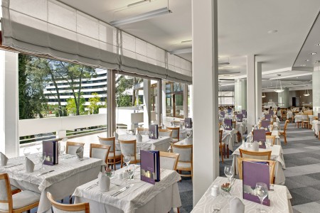 Uređaji: Buffet restoran, à-la-carte restorani "Burin" i "Oleander", aperitiv bar, seminarska dvorana, kongresna dvorana, dvorana za događanja s pozornicom i barom, kiosk s novinama. Zatvoreni bazen s morskom vodom, bazen s morskom vodom s dječjim bazenom, sunčalište, bar uz bazen i snack-grill. Ležaljke, suncobrani i ručnici za kupanje (uz depozit) uključeni u cijenu za hotelske goste. Animacijski program, mini klub, ljetna terasa sa scenskom pozornicom za večernje zabavne programe. Besplatno parkiralište (čuvano od 01.05.-30.09.) 350 metara od hotela. WiFi-Internet dostupan u cijelom hotelu (besplatno).