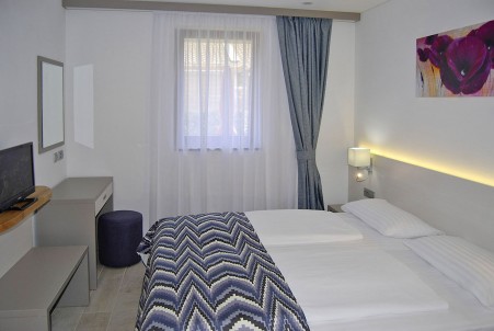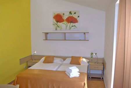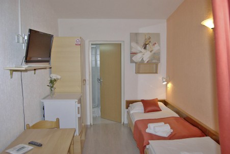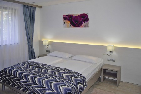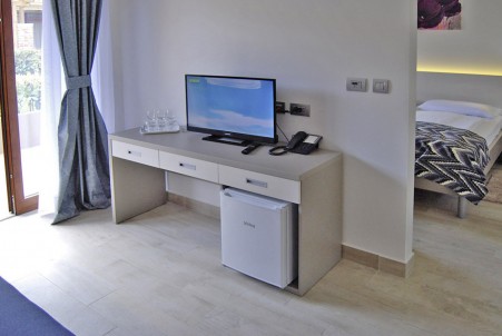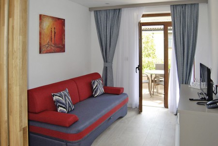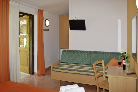 Tip sobe VA: Dvokrevetna soba (otprilike 16 m²) s mogućnošću dodatnog kreveta, SAT TV-om, klima uređajem, hladnjakom, tušem/WC-om, terasom s garniturom za sjedenje, dvije ležaljke i suncobranom.