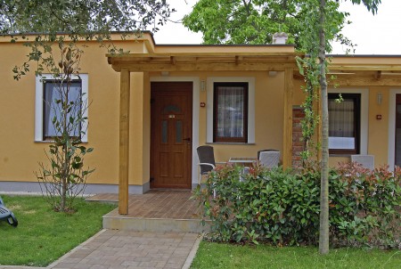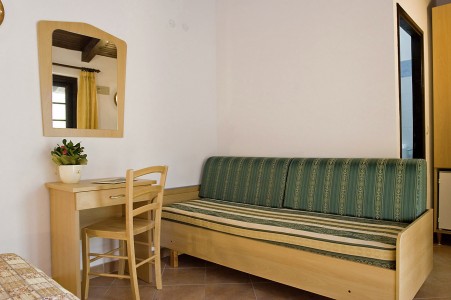 Tip sobe S: Dvokrevetna soba (približno 12 m², kreveti postavljeni jedan iza drugog) s hladnjakom, klima uređajem, SAT TV-om, tušem/WC-om i terasom s garniturom za sjedenje, dvije ležaljke i suncobranom.