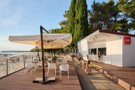 Plaža: do plaže nagrađene Plavom zastavom s popločanim ležaljkama i ležaljkama udaljeno je oko 200 metara kroz park. Suncobrani i ležaljke besplatni su za goste hotela uz predočenje iskaznice hotela (ograničeni broj).