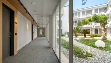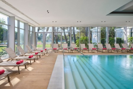 Uređaji: Buffet-restoran sa show-cookingom i Healthy Cornerom, lobby bar, Beachclub s barom (otvoren sezonski), à-la-carte restoran "Mediteran", konferencijski centar s tri dvorane za otprilike 160 osoba, frizerski salon, bankomat. Unutarnji bazen s morskom vodom, dva bazena s morskom vodom, sunčana terasa s pool bar, ležaljkama i suncobranima (besplatno, ograničena količina) te Canopy kreveti u relax zoni (uz naknadu). Sportska animacija s različitim fitness programima, večernja animacija s live glazbom (krajem svibnja do početka rujna). Dvije stanice za punjenje e-auta (uz naknadu), parkirna mjesta u blizini hotela (2 € po danu). Internet kutak i WiFi internet u hotelskom kompleksu (besplatno).