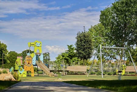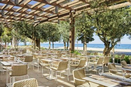 Plaža; Od kamenite plaže sa sunčalištima i djelomično pješčanim morskim dnom, tuševima, beach barom, ležaljkama i suncobranima (besplatno, ograničen broj) dijeli vas samo 30–100 m šetnje kroz park.