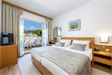 59 soba: veličine otprilike 15-20 m², moderno uređene s klima uređajem, SAT-TV-om, telefonom, besplatnim WiFi internetom, minibarom, kupaonicom/WC-om i balkonom s pogledom na more.