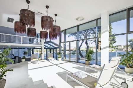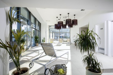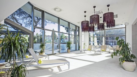 Wellness-center: Više od 200 m² velika spa zona u Aminess Vival Port9 Resortu nudi finsku saunu, prostor za opuštanje, fitness studio i whirlpool. U Beauty zoni dostupne su masaže, tretmani lica i tijela.