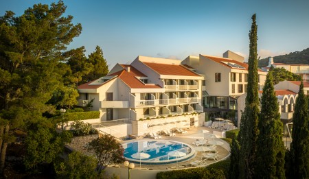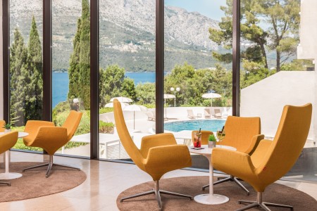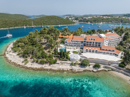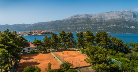 Hotel je smješten izravno uz more s slikovitim pogledom na Korčulu i okružen je mirisnom mediteranskom vegetacijom. Starogradsko jezgro udaljeno je samo 10 minuta hoda od hotela.