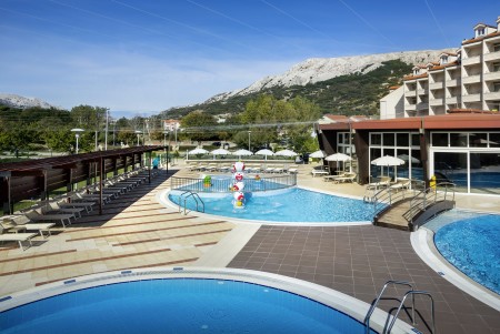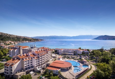 Uređaji: Restoran, Lounge-Bar s terasom, "Valfresco 24/7" s velikim izborom pića, sendviča, salata i slastica, Softplay zona, Imaginacija igralište, igraonica s didaktičkim igračkama i igrama, Game Lounge s igraćim konzolama. Trgovine uključujući supermarket, suvenirnicu i novinarnicu te butike u neposrednoj blizini hotela. Unutarnji bazen s dječjim bazenom i dva whirlpoola, bazen s fontanama i masažnim mlaznicama, ležaljke i suncobrani uz nadoplatu, dječji bazen, dječje igralište. Animacijski programi za djecu ujutro i poslijepodne (01.07.-01.09.) u Baška Beach Camping Resortu by Valamar, 200 m daleko od hotela, Maro Disco i dječji programi večerima (najmanje 3x tjedno). Parkiralište uz nadoplatu (oko 3 € po danu). WiFi internet dostupan u cijelom hotelu (besplatno).