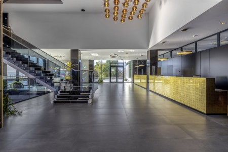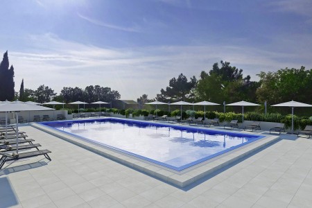 Hotelski kompleks sastoji se od glavne zgrade i nekoliko zasebnih paviljona. Smješten je u blizini glavne ceste, okružen hladovitim borovima i mediteranskim zelenilom.