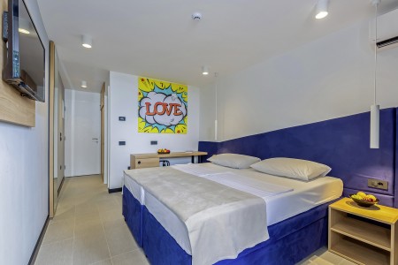 324 sobe: svaki paviljon ima 27 soba s klima uređajem, LCD TV-om, telefonom, WiFi internetom (besplatno) i tušem/WC. Mogućnost besplatnog dječjeg krevetića na upit.