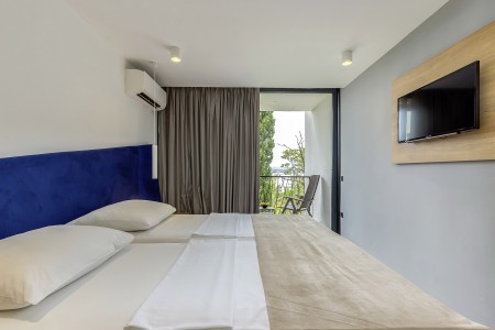 Dvokrevetna soba s balkonom, strana prema moru: oko 16-18 m², s dodatnim krevetom na razvlačenje za djecu do 11,99 godina i balkonom s pogledom na more.