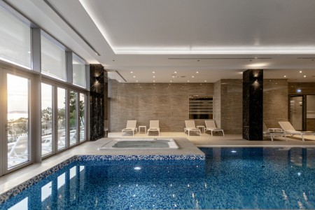 Uređaji: Restoran, Lounge & Cigar Bar, terasa s prekrasnim pogledom na more, unutarnji bazen s pogledom na more, lift, garaža kao i parking u sklopu hotela (ograničen broj mjesta, uz naknadu). Besplatan WiFi-Internet dostupan je u cijelom hotelu.