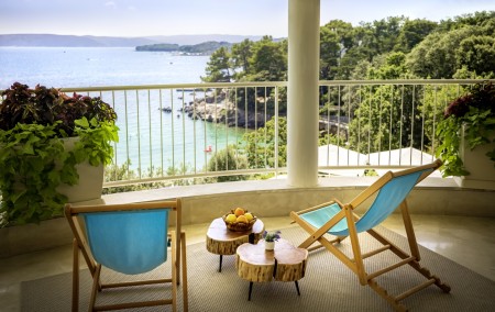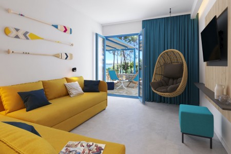 Junior Suite: oko 42 m², bračni krevet, dnevni boravak s dodatnim kaučem za dvije osobe, terasa ili balkon s pogledom na more.