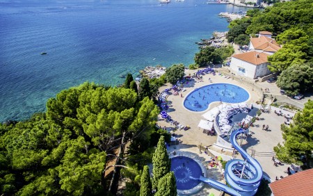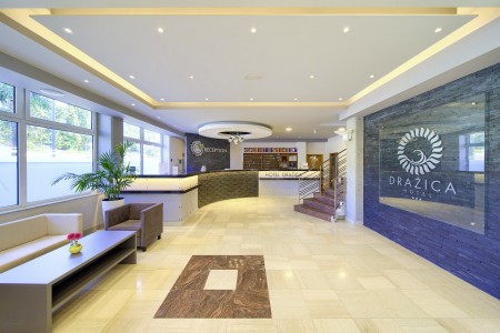 Uređaji: Recepcija, mjenjačnica, suvenirnica, klimatizirani buffet restoran i à la carte restoran s terasom u hotelu Dražica, bar u Vili Lovorka, koktel bar s terasom, bar uz bazen, slatkovodni bazen za odrasle, slatkovodni bazen s Aquagun za djecu, sunčana terasa s ležaljkama i suncobranima (uz nadoplatu). Tijekom sezone večernji zabavni program uz živu glazbu i ples, cjelodnevni animacijski program za djecu i odrasle (srpanj do kolovoz). WiFi-Internet dostupan u cijelom hotelskom kompleksu (besplatno). Parking u sklopu hotela (besplatno).