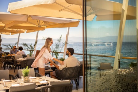 Plaža: Šljunčana plaža s najmom ležaljki nalazi se odmah ispred hotela, dok su šarmantna mala šljunčana uvala i stjenovita plaža udaljene oko 150 m.