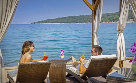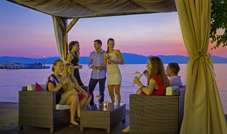 Plaža: Šljunčana plaža s iznajmljivanjem ležaljki smjestila se neposredno ispred hotela, dok se mala šljunčana uvala i stjenovita plaža nalaze na udaljenosti od oko 150 m.