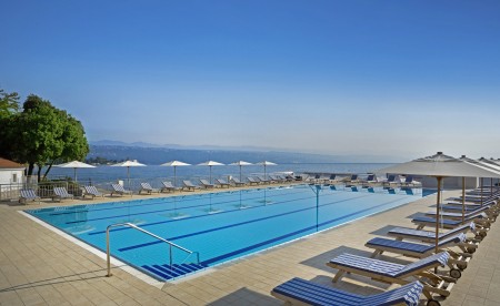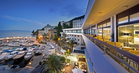 Hotel postavljen na terasama smješten je izravno iznad vlastite marine, oko deset minuta hoda uz obalu od centra mjesta.