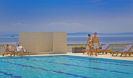 Premium dvokrevetne sobe: s bračnim krevetom (200x200 cm) i ekskluzivnim pristupom zajedničkoj terasi s ležaljkama i grijanim bazenom s morskom vodom.