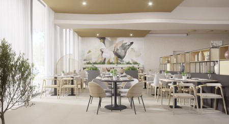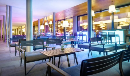 Uređaji: Restoran „Mediterraneo“ s buffetom, Show-Cookingom, dječjim kutkom i terasom, restoran „Oliva“ s terasom, aperitiv i cocktail bar, više salona za druženje, gift boutique, suvenirnica i kiosk s novinama, unutarnji bazen s whirlpoolom, kompleks bazena s bazenom za odrasle, dječjim bazenom i grijanim bazenom za djecu sa vodenim klizalištima, pool bar i velika sunčana terasa (večernja glazba za ples), ležaljke i suncobrani (besplatno, ograničeni broj). Program animacije za odrasle i djecu različitih dobnih skupina u Maro klubu s igraonicama, Soft Play Roomom, dječjim kinom i mnogo više. Pranje rublja i usluga peglanja (uz naknadu). Spremište i prostor za pranje bicikala. Besplatan parking za automobile ispred hotela. Internet kutak dostupan (besplatno), WiFi dostupan u cijelom hotelu (besplatno).