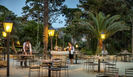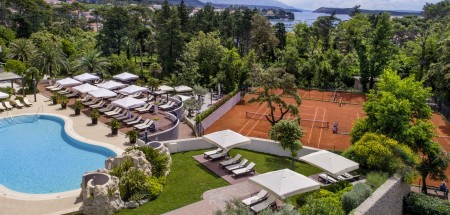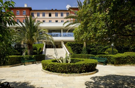 Tradicionalna kuća smještena je na uzvišenju iznad luke, okružena palmama i borovima u gradskom parku "Komrčar".
