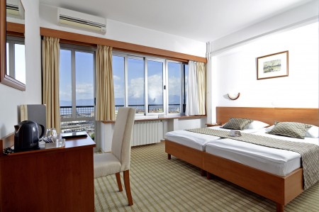 Standardne sobe: otprilike 15 m², smještene s pogledom na more, većinom s balkonom i pogledom na Rijeku i Kvarnerski zaljev.