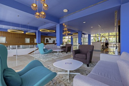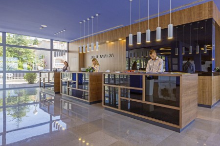 Uređaji: Klimatizirani restoran s terasom, aperitiv bar s terasom, prostrane salone, igraonicu, dvije kongresne dvorane, privatnu ORL ordinaciju. Grijani unutarnji bazen, kompleks bazena na moru s dva bazena s morskom vodom (otvoreno ovisno o vremenskim uvjetima od 15.06.-15.09.), sunčane terase, ležaljke i suncobrane (besplatno, ograničen broj) i kafić. Animacijski program za djecu i odrasle (sezonski). WiFi-Internet dostupan u cijelom hotelu (besplatno). Naplatni parking u hotelu (ograničen broj mjesta, otprilike 10 € po danu).