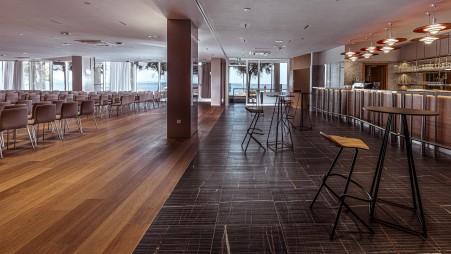 Uređaji: Restoran, snack bar kod bazena, lobby bar s terasom, dućan s časopisima i suvenirima. Dva morska bazena s velikim sunčanim terasama, whirlpool, ležaljkama i suncobranima (besplatno, ograničen broj). Grijani morski unutarnji bazen i whirlpool. Animacijski programi za djecu (5-12 godina) i odrasle od sredine lipnja do rujna, tijekom srpnja/kolovoza također večernja animacija s živom glazbom. Besplatno parkiranje u hotelu, hotelska garaža uz nadoplatu (10 € po danu). Internet kutak dostupan (besplatno), WiFi-Internet dostupan u cijelom hotelu (besplatno).