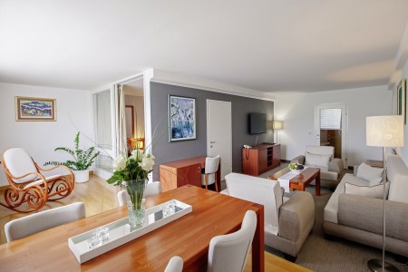 Superior Suite: otprilike 60 m², spavaća soba s bračnim krevetom i pojedinačnim krevetom, prostrani dnevni boravak, minibar, natkrivena lođa, s pogledom na more.