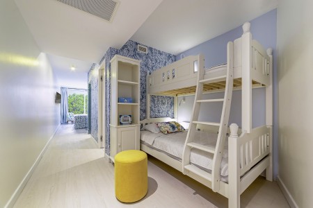 Obiteljske sobe: Oko 31 m², bracni krevet ili dva odvojena kreveta i dodatni krevet na kat za dvije djece do 11,99 godina. Moguće je odabrati s francuskim balkonom s pogledom na atrij, s francuskim balkonom s pogledom na vrt ili s balkonom s pogledom na vrt.
