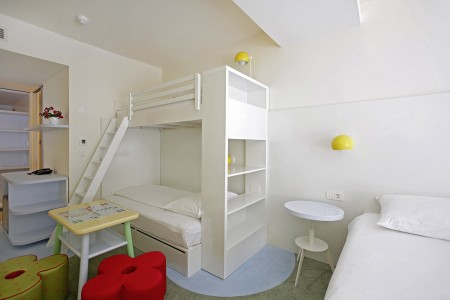 Obiteljska soba: otprilike 20-28 m², jedan bračni krevet ili dva pojedinačna kreveta i dodatni krevet na kat za dvoje djece do 11,99 godina. Može se također rezervirati s balkonom.