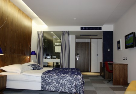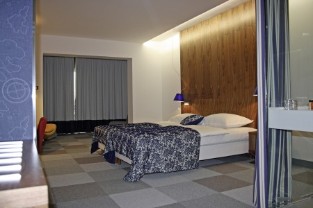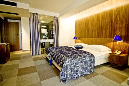 44 Sobe: moderno i udobno uređene, s bračnim krevetom ili dva pojedinačna kreveta, kaučem na razvlačenje (80 x 180 cm), SAT-TV-om, klima uređajem, telefonom, WiFi internetom (besplatno), minibarom, sefom i kupaonicom ili tušem/WC.