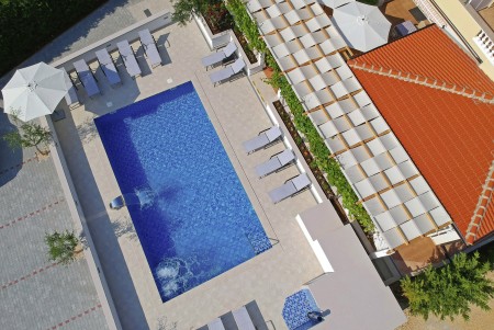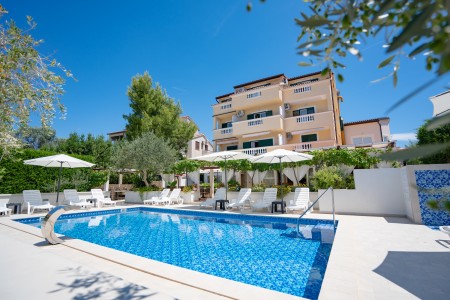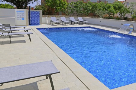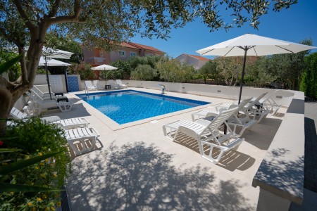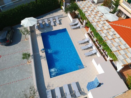 Pansion se nalazi u popularnom odmaralištu Novalja na otoku Pagu i nudi smještaj u 12 moderno i udobno uređenih soba. Do najbliže šljunčane plaže udaljeni smo samo oko 500 m. Slavna party plaža Zrće, poznata i kao "Hrvatska Ibiza", udaljena je 3,5 km. Ovdje u pet klubova od sredine lipnja do početka rujna "ide sve non-stop", često su gosti top europski DJ-i. Wakeboard postrojenje upotpunjuje ponudu. U predsezoni i postsezoni u Novalji je ugodno mirno, tako da i obitelji s malom djecom, kao i oni koji traže opuštanje, mogu uživati u bezbrižnom vremenu uz more. Samo 2 kilometra od pansiona nalaze se brojne pješčane plaže i kupališne uvale s kristalno čistom vodom. Pansion također nudi bazen (9 x 5 m) s sunčanom terasom, koji je gostima kuće na raspolaganju za zajedničko korištenje.