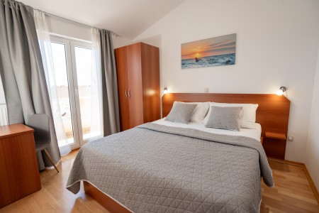 12 soba: cca 16-18 m², udobno uređene, bračni krevet, tuš/WC, besplatni kozmetički proizvodi, klima uređaj, SAT-TV, WiFi-Internet (besplatno) i minibar. Dio soba ima balkon.
