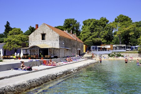 Plaža: Šljunčana plaža sa betoniranim ležaljkama, tuševima i beach barom udaljena je oko 150 m. Ležaljke i suncobrani dostupni su uz plaćanje.