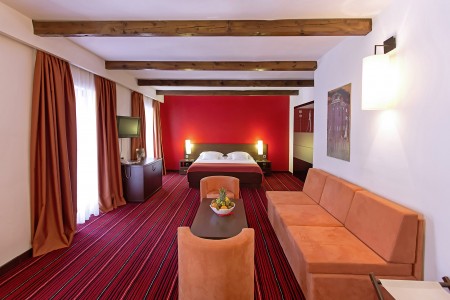 16 Superior soba u glavnoj zgradi****: otprilike 20-25 m², bračni krevet, klima-uređaj, SAT-TV i radio, sef, minibar, telefon, Wi-Fi Internet (besplatno), kupaonica/WC. Sobe u glavnoj zgradi kategorizirane su sa 4 zvijezdice. Mogućnost postavljanja dječjeg krevetića na zahtjev (uz nadoplatu, 8 € po danu).