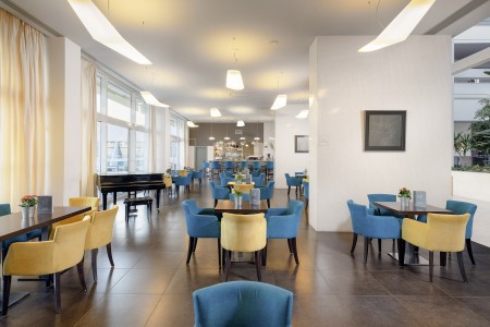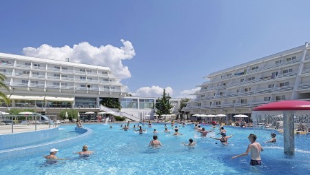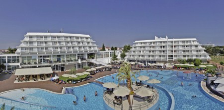 Uređaji: Restoran, à la carte restoran i taverna, aperitiv bar, kiosk s novinama i suvenirnica, frizerski salon, poslovni centar. Bazen s pitkom vodom s vodopadima, zasebni dječji bazen s malim toboganom, suncobrani i ležaljke (besplatno, ograničen broj), bazen s pitkom vodom unutra. Korištenje bazenskih ručnika za goste je besplatno. Tijekom visoke sezone (15.06.-15.09.) 6x tjedno animacijski program za djecu i odrasle. Čuvano parkiralište ispred hotela (12 € po danu) i hotelska garaža (20 € po danu). WiFi internet dostupan u cijelom hotelu (besplatno).