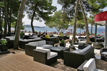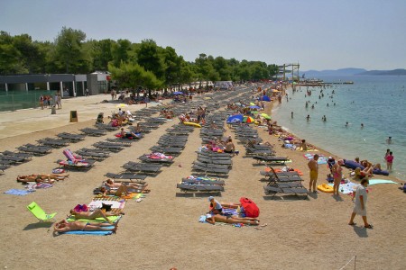 Plaža: Do šljunčane plaže sa ležaljkama, tuševima, najmom suncobrana i ležaljki (uz naknadu), restorana, pizzerije, bara, trgovina sa suvenirima i plažnim artiklima, ima oko 50 m.