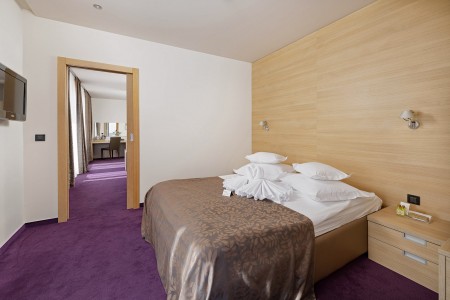 Junior Suite: cca. 38 m², s jednom spavaćom sobom, dnevnim boravkom s kaučem na razvlačenje za dvoje djece ili jednu odraslu osobu, kupaonicom/WC-om, balkonom.