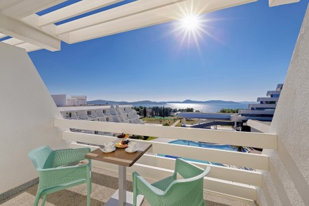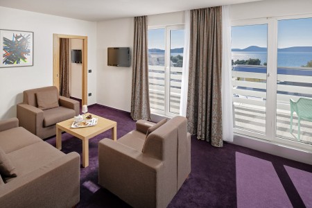 Familijarna Suite: cca. 62 m², sastoji se od dvije spavaće sobe, dnevnog boravka i kupaonice s kadom/WC-om, pet balkona s pogledom na more.
