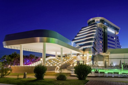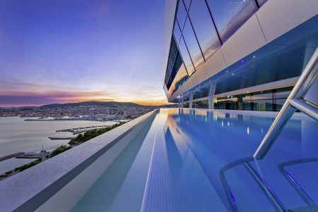 Luksuzni hotel Olympia Sky povezan je prolazom sa sestrinskim hotelom Olympia. Osim luksuzno uređenih soba, poseban vrhunac je otvoreni bazen na 9. katu s prekrasnim panoramskim pogledom.