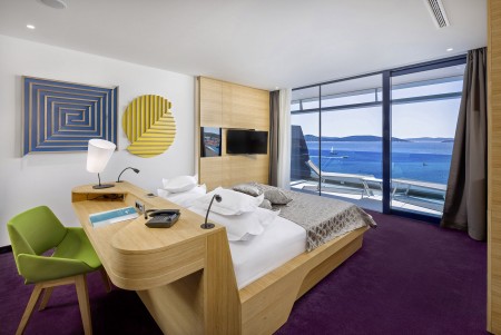 Premium Suite: veličine 75-85 m², spavaća soba s bračnim krevetom, dnevni boravak s kaučem za spavanje (160x200 cm) za dvoje djece ili jednog odraslog, kupaonica/WC, balkon s pogledom na more.